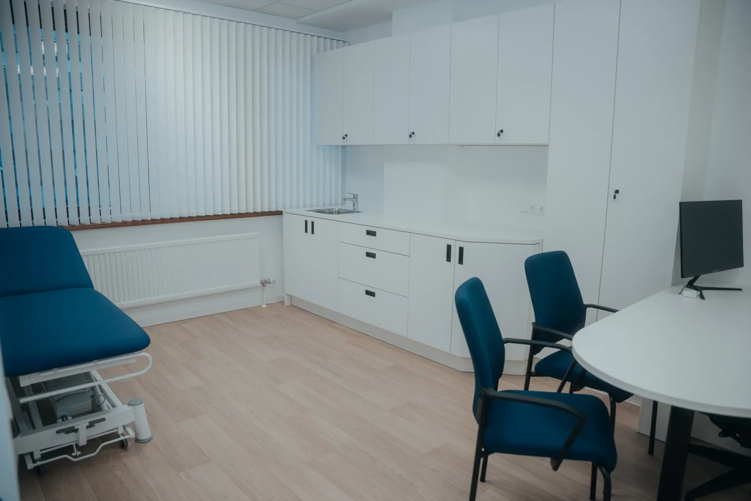 Drei voll ausgestattete, helle Praxisräume für Ärzte, Therapeuten, Trainer und Gesundheitsberufe.